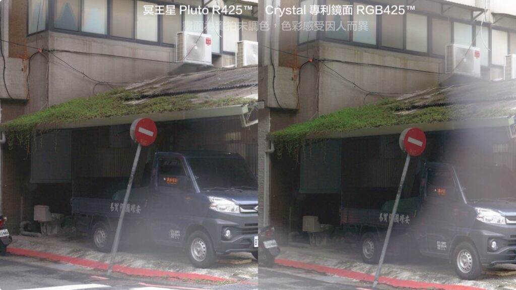 有沒有發現我剛剛用到了很多跟形容 CRYSTAL 一樣的詞彙?「鮮艷、消滅反光、接近肉眼」,沒錯,這些說穿了其實就是防止眩光,在大部分時候嚴格說起來並不算是真正 100% 必要,但是在反射光特別強的時候差別就非常大了。