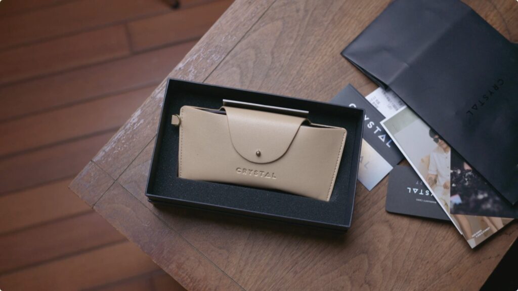 而眼鏡盒內還有一塊印有 CRYSTAL 的眼鏡布。
