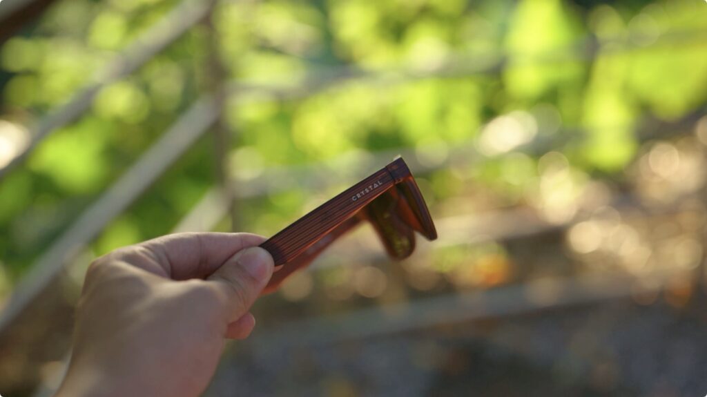 但是說真的,戴在臉上一直有那麼一點點格格不入的感覺,後來我才想通,畢竟是西方人的品牌,我們臉的大小、眼睛的距離,甚至是整個頭的尺寸就不一樣,而 CRYSTAL 在配戴方面的舒適程度,用一句話來形容的話,也是再次呼應前面我提到的「有戴跟沒戴一樣」,再強調一下,尤其偏光鏡的鏡片更是超級有感視覺上更舒適,我常說有些產品最棒的境界就是零存在感融入我們的生活當中,CRYSTAL 也算是印證了這點。