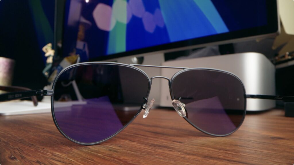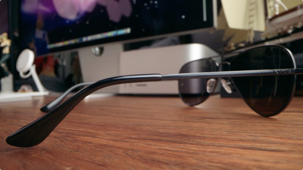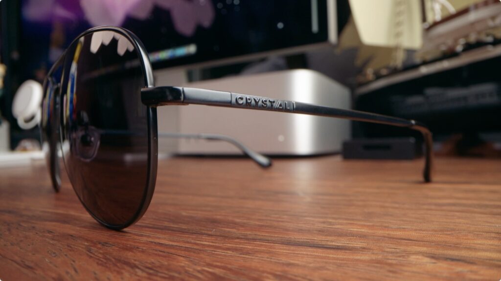 有些人好像會覺得不舒服,但我自己和身邊的朋友是都沒什麼感覺,而且 CRYSTAL 遇到的虹彩現象,是比我前一副有偏光鏡的太陽眼鏡存在感低很多的,又或是觀看含有偏光膜的顯示器,譬如車內的螢幕、電腦螢幕、手機螢幕,有可能會螢幕變更黑、更暗。