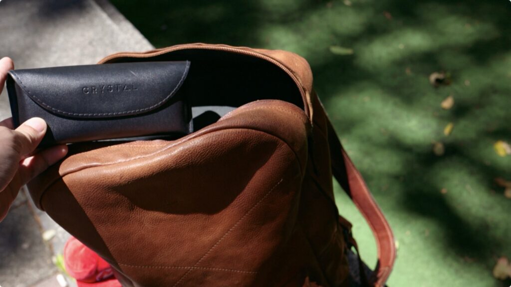目前用了一年多,日常我都是這樣隨手丟進包包,眼鏡盒對於太陽眼鏡的保護力是很 OK 的。