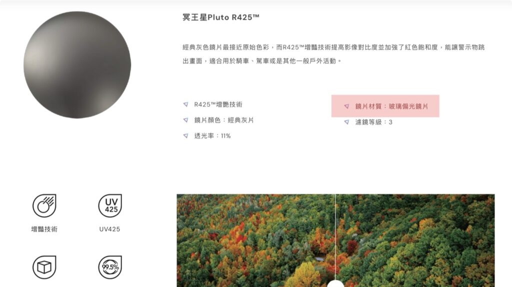 Comet 戴比較久,我先從這副開始說,冥王星 Pluto R425 這個灰片鏡片,在我第一次戴上就真的有驚艷到,這也就是 CRYSTAL 的主打特點之一「獨家增艷技術」,戴上後能非常直觀感受到跟以前戴過的太陽眼鏡都不同。