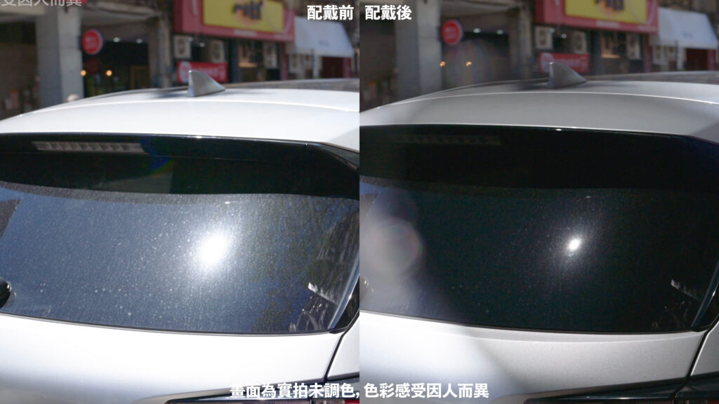 我原本以為跟灰片比起來就只是多一層外觀上的鍍膜而已,其實從內往外看出去的視覺飽和度也是有差異的。